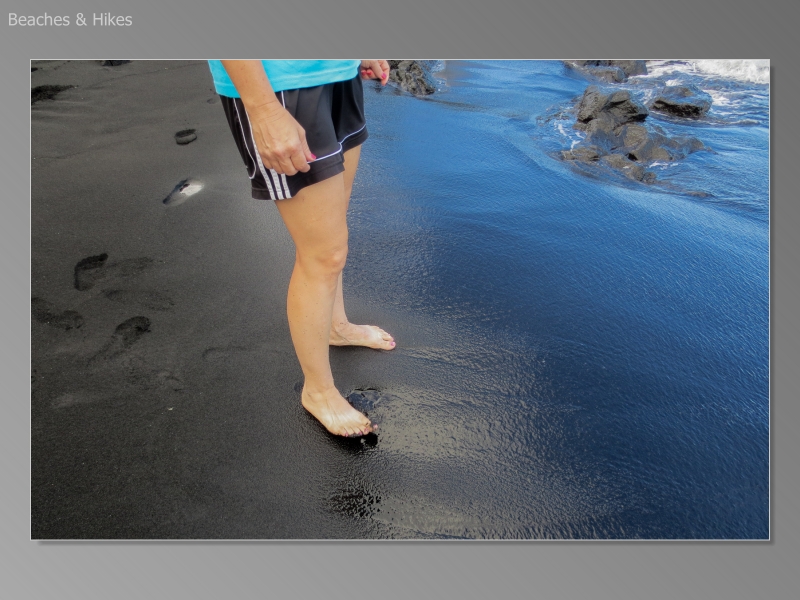 Below is one of three sets of pictures from our 2014 trip to the Big Island. We did quite a bit of snorkeling around the rocks off the beaches.  We made special trips to see the black sand beaches. Click on the small image to see a bigger one.